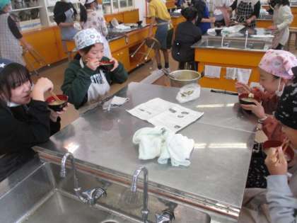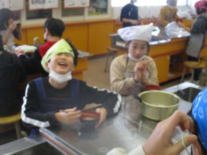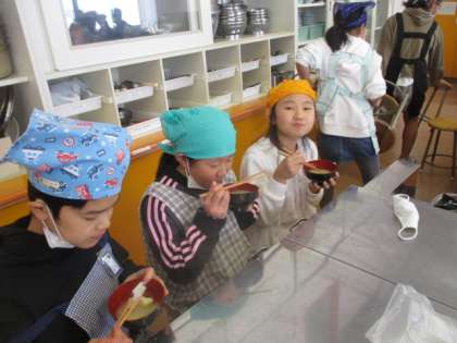みそ汁を飲んでいる子供たちから「おいしい」という声がたくさん聞こえてきました。