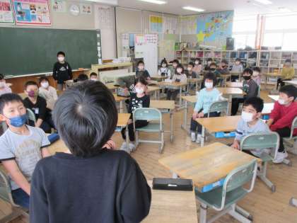 2年生 国語の授業の様子 公開日 2022/01/17 更新日 2022/01/17 2年生 3学期からは、毎週金曜日の3・4限は学年で授業をします。今日は、来週が本番のチャレンジテストの練習や、国語の学習を行いました。最初にスピーチタイムを行い、担当の子供が「生まれ変わったらなりたいもの」について話しました。話し手に体を向けて話を聞き、友達の発言に反応することが身に付いてきており、成長を感じました。友達と学び合う楽しさを実感できる時間にしていきたいと思います。
