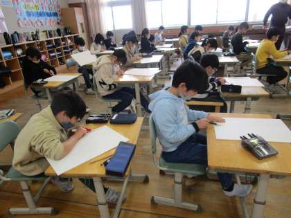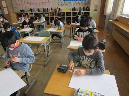 今日から、彫刻刀で彫り始めました。久しぶりなため、慎重に行っていました。どんな版画になるか楽しみです。