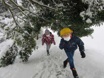 1年竹組 冬は何があるかな 公開日 2022/01/18 更新日 2022/01/18 1年生 「枝が垂れ下がって、トンネルになっとるよ」 「ツバキ、きれいだね」 「ここ、すべるよ」 晴れ間を見つけて、冬見つけをしました。 これから、冬ならではの遊びを計画して、楽しむ予定です。
