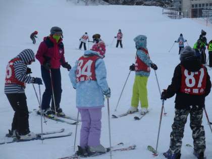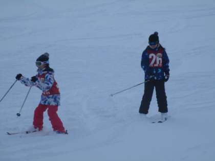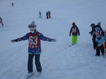 バランスを上手にとったり、ハの字の形を意識したりしながら坂を滑り降りています。