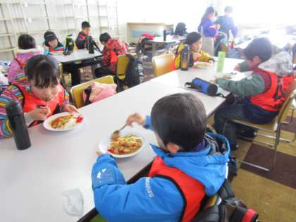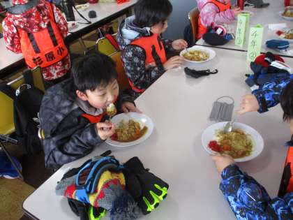 昼食のカレーライスはとてもおいしくいただきました。がんばったので、お腹が減り、お代わりしたいくらいでした。