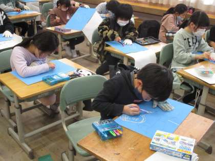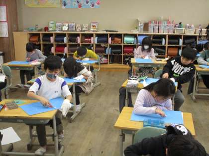 「手が疲れるよ。難しいな」と苦戦する子もいれば、「意外と楽しい!もっと彫りたい」と、彫刻刀のおもしろさに魅了される子もいました。