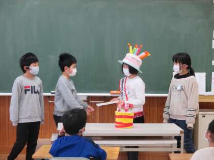 2年生 お誕生日会 松組 公開日 2022/01/21 更新日 2022/01/21 2年生 3学期初めてのお誕生日会を行い、明日が誕生日のお友達をお祝いしました。誕生日係のメンバーが替わりましたが、スムーズに司会進行をしていました。