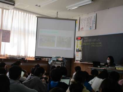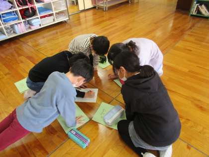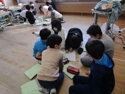 6日の学習発表会に向けて、今日は発表の仕方の話を聞き、グループで集まって発表内容、役割分担を決めました。