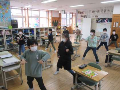 学習発表会に向けて、ダンスの練習をしています。みんなで教え合いながら、楽しく練習に励んでいます。