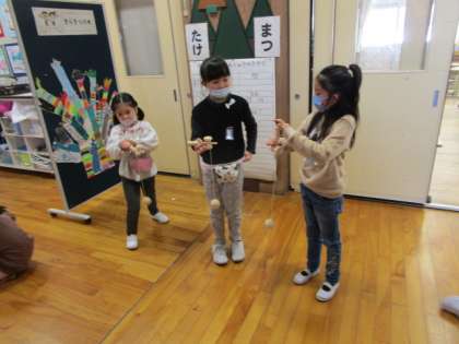 1年生松組 生活科むかしのあそび 公開日 2022/02/02 更新日 2022/02/02 1年生 今日は、「こま」「ヨーヨー」「けん玉」「だるま落とし」「お手玉」の中から、上手になりたいものを1つ選んで練習しました。 「初めてできた」「何回もできるようになった」など、上達して喜ぶ姿が徐々に見られるようになってきました。