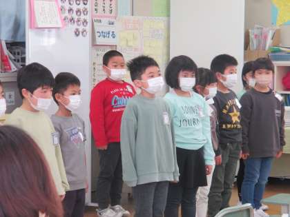 今日は、ご参観いただきありがとうございました。練習時間の少ない中、また時間や内容を縮小した発表となりましたが、発表会後の振り返りでは、多くの子供が「緊張したけれど、今の自分にできる精一杯の力を出せた」と話していました。できるようになったことだけではなく、心も大きく成長している子供たちの思いを知っていただくことができ、嬉しく思っています。ご家庭でも、ぜひ2年生になってからの成長や頑張りについて、一緒に話してみてください。