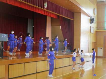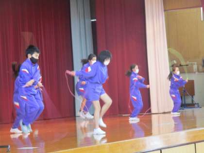 5年生 6年生へジャンプ!みんなでやってみよう短縄発表会 1 公開日 2022/02/08 更新日 2022/02/08 5年生 練習時間が限られる中でも、自分の力を高めようと一生懸命に取り組んできました。一人一人が「やってみよう」という思いをもって、短縄の技を披露しました。