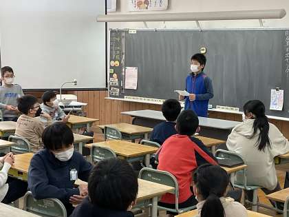 集会委員が各教室へ行き、クイズを出していました。感染症対策をしながらできるように、工夫して行っていました。