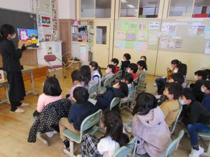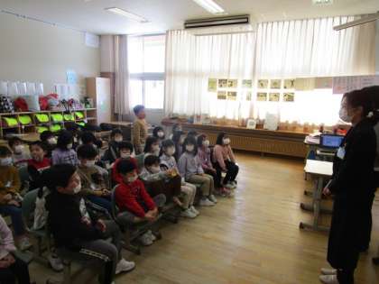 松組では、まず「屋根がチーズでできた家」という恐いトロル女が出てくるお話を聞き、想像を膨らませながらお話の世界に引き込まれました。