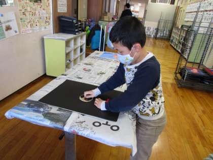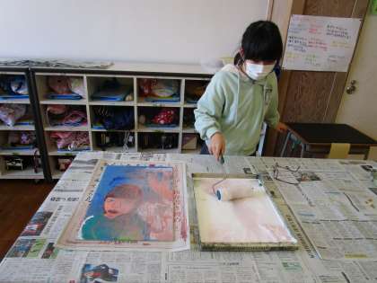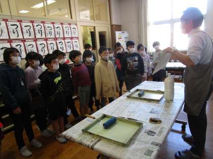 3年生 刷り 公開日 2022/02/10 更新日 2022/02/10 3年生 今日は、待ちに待った版画の刷りを行いました。 業者の方にコツを教えていただき、一生懸命ローラーやばれんを動かします。 版画独特の刷り上がりを楽しんでいました。