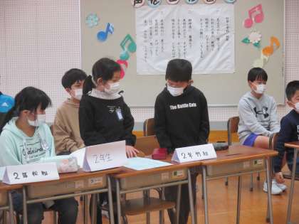 2年生 卒業を祝う会 実行委員会 公開日 2022/02/14 更新日 2022/02/14 2年生 卒業を祝う会の名前を話し合う実行委員会が開かれました。各クラスで話し合った内容を分かりやすく伝えることができました。