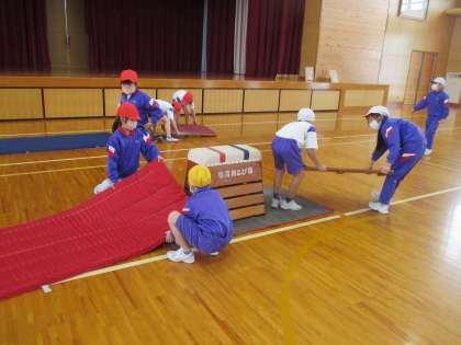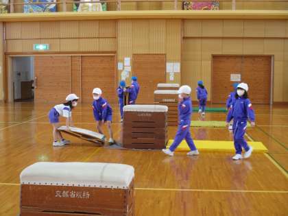 2年生 体育 跳び箱の準備 公開日 2022/02/16 更新日 2022/02/16 2年生 今日で跳び箱の学習も最後になりました。準備も、回を重ねる毎に、友達と協力してスムーズにできるようになりました。明日からは、マット運動の学習を行います。