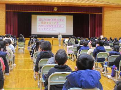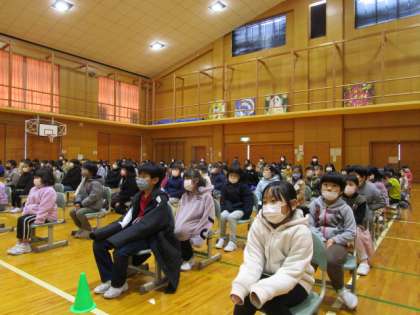 今日は、来月卒業する6年生から在校生へのバトンタッチ集会がありました。
