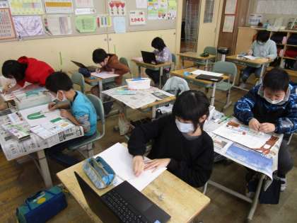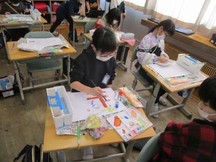 図工では、学習してきた物語の中から1つ話を選び、それを絵に表す活動をしています。