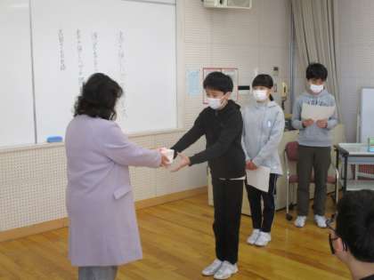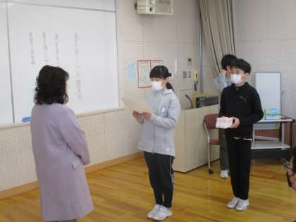 書き損じはがき贈呈式 公開日 2022/02/24 更新日 2022/02/24 委員会活動 これまでに集まった書き損じはがきの贈呈式を行いました。 ユネスコ富山協会の方からのお話を聞き、書き損じはがきの取組についての理解をより深めることができました。