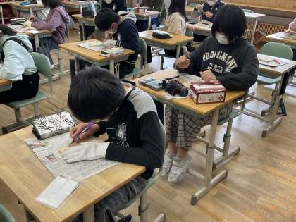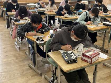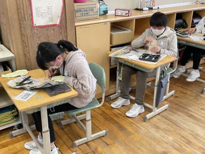 卒業まで、あと13日。子供たちは、卒業の記念となる作品づくりに取り組んでいます。彫刻刀で板を彫り終えた子供から、板に色を塗っていきます。