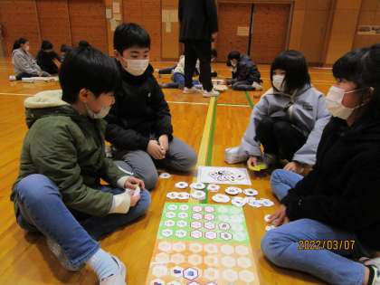 PTA主催で深井さんをお招きし、SDGsについての講演会がありました。グループでボードゲームをしながらSDGsについて楽しく学びました。SDGsは、みんなが協力しながら行うことが大切だと学びました。今後の生活に生かしてほしいです。