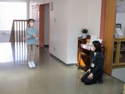 こま回しと短縄のあや跳びの練習をがんばり、自信を付けた子供たちが、校長室へ向かいました。