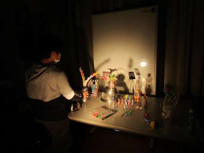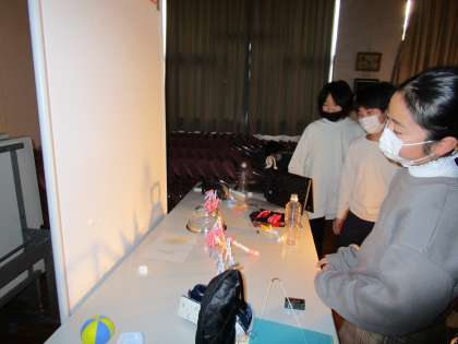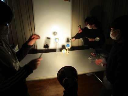 4年生 図工(光と影からできる形) 公開日 2022/03/09 更新日 2022/03/09 4年生 図工では、身の回りの物(やかんやざる、洗濯ばさみ、下敷き等)をライトに当て、できる形の面白さを味わいました。杉の子ホールを真っ暗にして浮かび上がる光と影の形をグループや個人で作り、クロームブックで撮影しました。