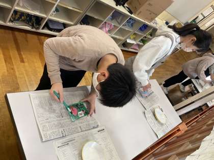 卒業制作として進めてきたメモリアルボックスが、あと少しで完成します。一人一人が思い出に残るようにデザインを考え、板を彫り色を塗ってきました。どんな仕上がりになるか楽しみです。