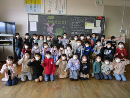 進級し、学級の仲間が増えて、とても楽しそうな子供たちの笑顔がたくさん見られました。教室では、学年目標の「Smile(スマイル)」について話し、○×クイズや山手線ゲームをして楽しみました。これから1年間、よろしくお願いします。