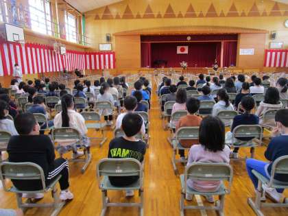 3年生 入学式・帰りの会 公開日 2022/04/07 更新日 2022/04/07 3年生 初めて在校生として入学式に参加しました。1年生のお兄さん、お姉さんとして、歓迎する気持ちを姿勢や拍手等の態度で示す姿が立派でした。 帰りの会のスマイルタイムでは、クラス全員が主体的に挙手して、今日の友達のよさや、学級のみんなの頑張りについて発表することができました。