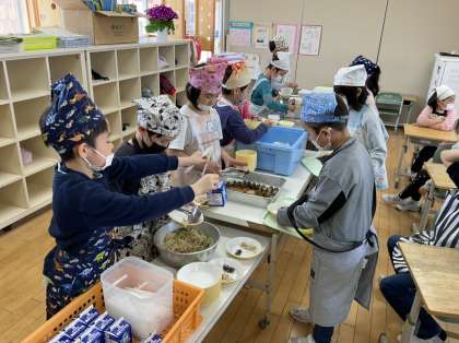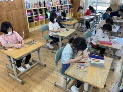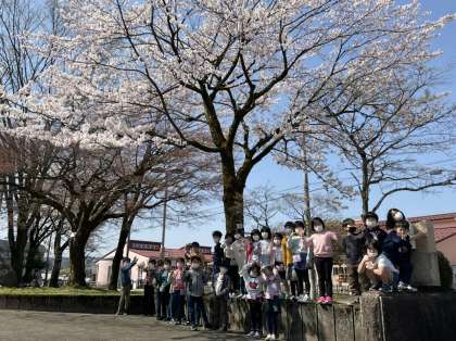 上:校庭の桜と一緒に、「ハイ、チーズ」