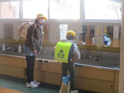 登校後の手洗いの声かけや朝の準備のアドバイス等、気持ちよく学校生活をスタートできるように想像力を働かせながら進んで行動しています。