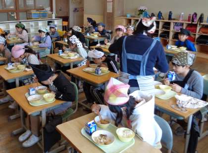 5年生 今年度初の給食 公開日 2022/04/08 更新日 2022/04/08 5年生 今年度初の給食でした。 5年生になり、量も多くなりました。 もりもり食べて元気で健康な体を作りましょう。 作っていただいている調理員さんや食材を作っていただいている方たちへ「感謝」の気持ちをもって、残さず食べられるとよいですね。