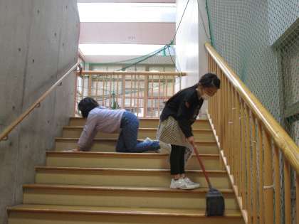 班のメンバーで話し合って担当の仕事を決め、協力して清掃場所がきれいになるように頑張っています。