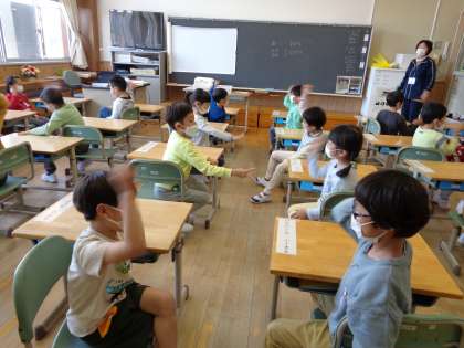 みんなと楽しくジャンケン。大きな声、大きな動きで楽しんでいる子供たちでした。