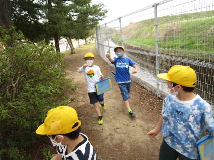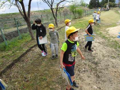 3年生 理科「春のしぜんにとび出そう」 公開日 2022/04/13 更新日 2022/04/13 3年生 今日は、実際にグラウンドに出て、春の生き物を探しました。体全体で春がきたことを感じ、みんなスマイルになっていました。