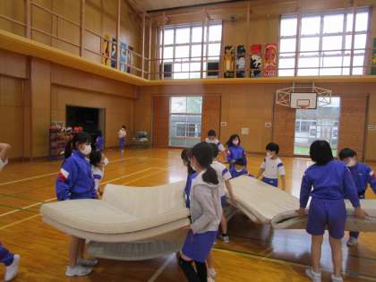 4年生 てきぱき 公開日 2022/04/14 更新日 2022/04/14 4年生 今年度、はじめてのマット運動を行いました。用具の準備・片付けでは、友達と声をかけ合い素早く動いていました。あまりの素早さに驚き撮影した写真です。