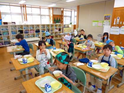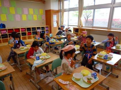 2年生 お祝い給食 公開日 2022/04/19 更新日 2022/04/19 2年生 今日は、進級をお祝いした「お祝い給食」でした。準備をスムーズに行い、おいしく給食をいただきました。野菜が苦手な子も、今日は少し食べてみようとがんばっていました。