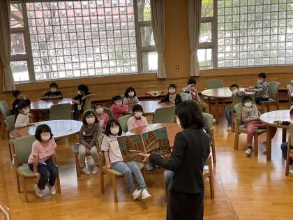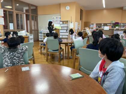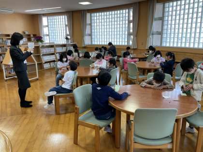 司書教諭から本の借り方・返し方について教えてもらい、余った時間で読み聞かせをしてもらいました。