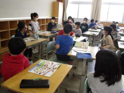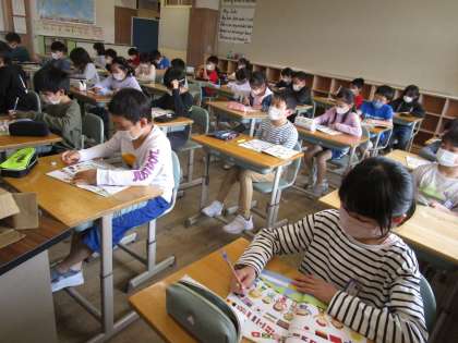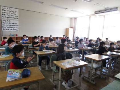 3年生 初めての外国語活動 公開日 2022/04/20 更新日 2022/04/20 3年生 子供たちが、とても楽しみにしていた外国語活動の授業がありました。いろいろな国の挨拶について真似をして言ってみたり、どの国の挨拶かを当てたりして楽しみました。外国語活動の授業を通して、いろいろな国に興味をもってくれたら、嬉しいです。