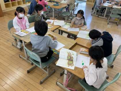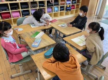 音読発表会に向けて、グループの仲間と役割を決めたり読む練習をしたりして、準備を進めています。