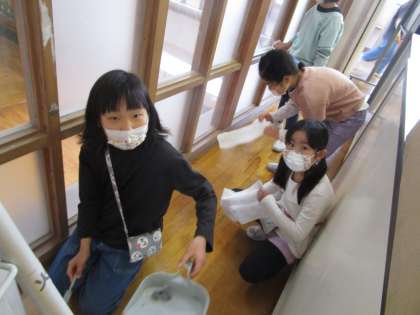 4年生 マイタイム〜すみっこもぴっかぴか〜 公開日 2022/04/22 更新日 2022/04/22 4年生 風の強い日は、ほこりが舞います。すみっこに溜まったほこりもきれいに掃除してくれたすてきな4年生です。