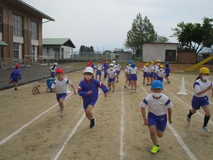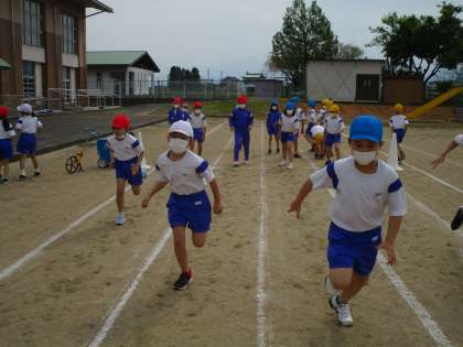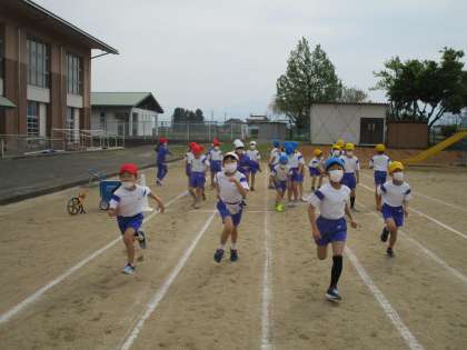 3年生 体育 80m走 公開日 2022/04/22 更新日 2022/04/22 3年生 運動会に向けて、今日初めて80m走を行いました。距離が長くなっても、最後まで諦めずに走りきっていました。その後、久しぶりにリレーを行い、2年生の時に学習したバトンパスの仕方を復習しました。