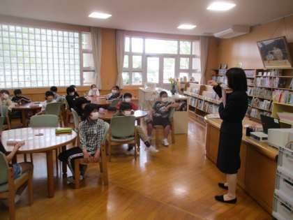 図書オリエンテーションでは、図書館司書の先生から本の借り方、返し方について教えていただきました。1年間の読書のめあてを考えた後は、一人一人お気に入りの本を選んでいました。