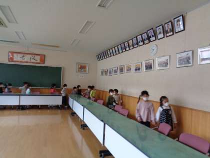 1年竹組 生活科 公開日 2022/04/22 更新日 2022/04/22 1年生 学校の2、3階を探検しました。どの教室にどんなものがあるのかを考えながら探検しました。「トロフィーがたくさんある」「校長室にはソファがある」等自分なりの発見を楽しみました。