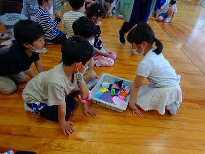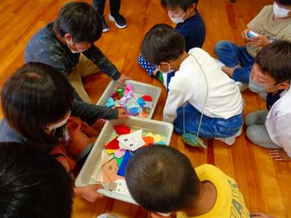 生活科の学習で、1年生と交流をしました。自分たちで考えたクイズを出したり、縄跳びやマジックを披露したりしました。最後は、折り紙のプレゼントをしました。