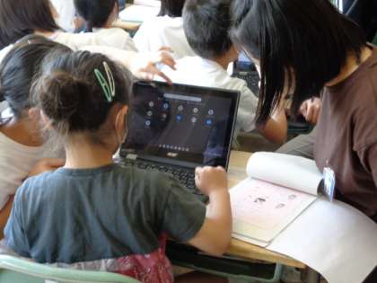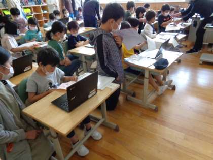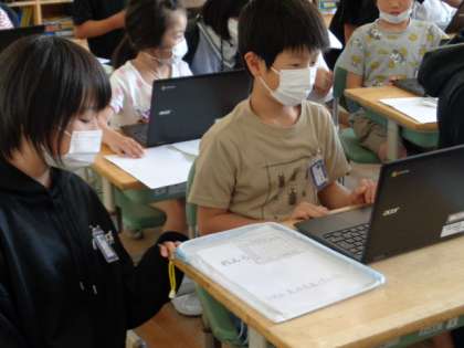 6年生 竹組 1年生さんのパソコン先生 公開日 2022/05/07 更新日 2022/05/07 6年生 パソコンの先生として、また最高学年として1年生さんに丁寧にパソコンの操作を教えたり、優しく接したりするなど、頼もしい姿をたくさん見せてくれました。