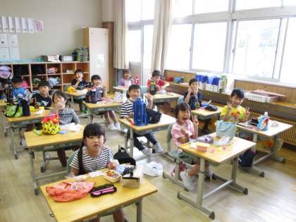 一生懸命に取り組んだ運動会の後は、待ちに待ったお弁当タイム。 おいしくいただきました。