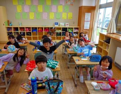 運動会が終わり、おなかがぺこぺこの2年生でした。