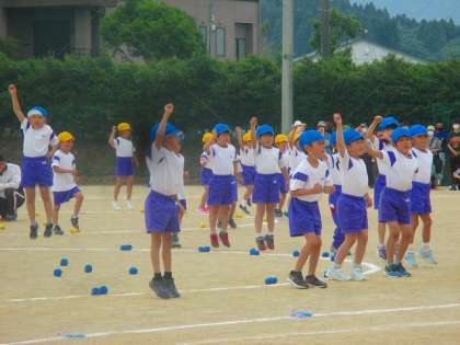 1年生と協力して行った玉入れです。どうすればたくさん玉が入るか作戦を立てて、練習をしてきました。