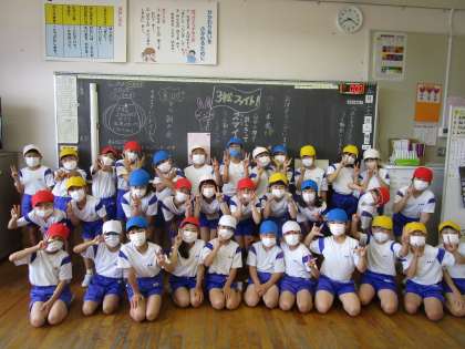 運動会のスローガンを確認し、一人一人が目当てをもって運動会に臨みました。