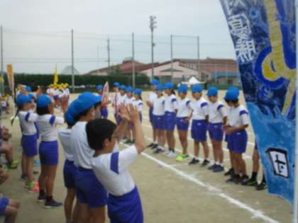 6年生 解団式(青団・黄団) 公開日 2022/05/21 更新日 2022/05/21 6年生 5年生を中心に下級生からエールを受けて、これまでの運動会への取組に達成感や満足感を味わっている姿が見られました。